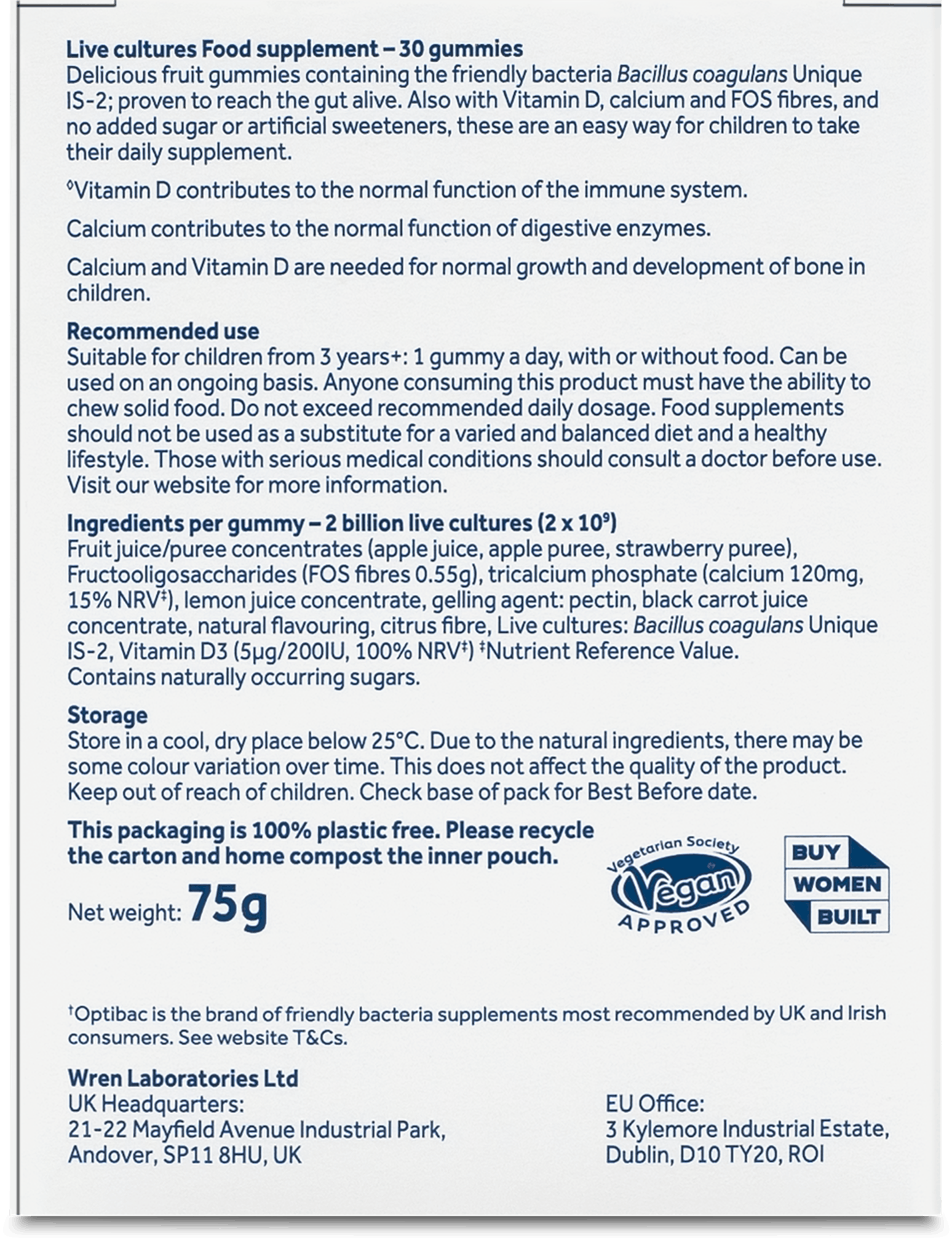 Optibac Probiotics uses only high-quality bacterial strains, all tested to ensure potency at the end of shelf life. Optibac Kids Gummies does not require refrigeration. Store in a cool, dry place below 25°C and out of direct sunlight.