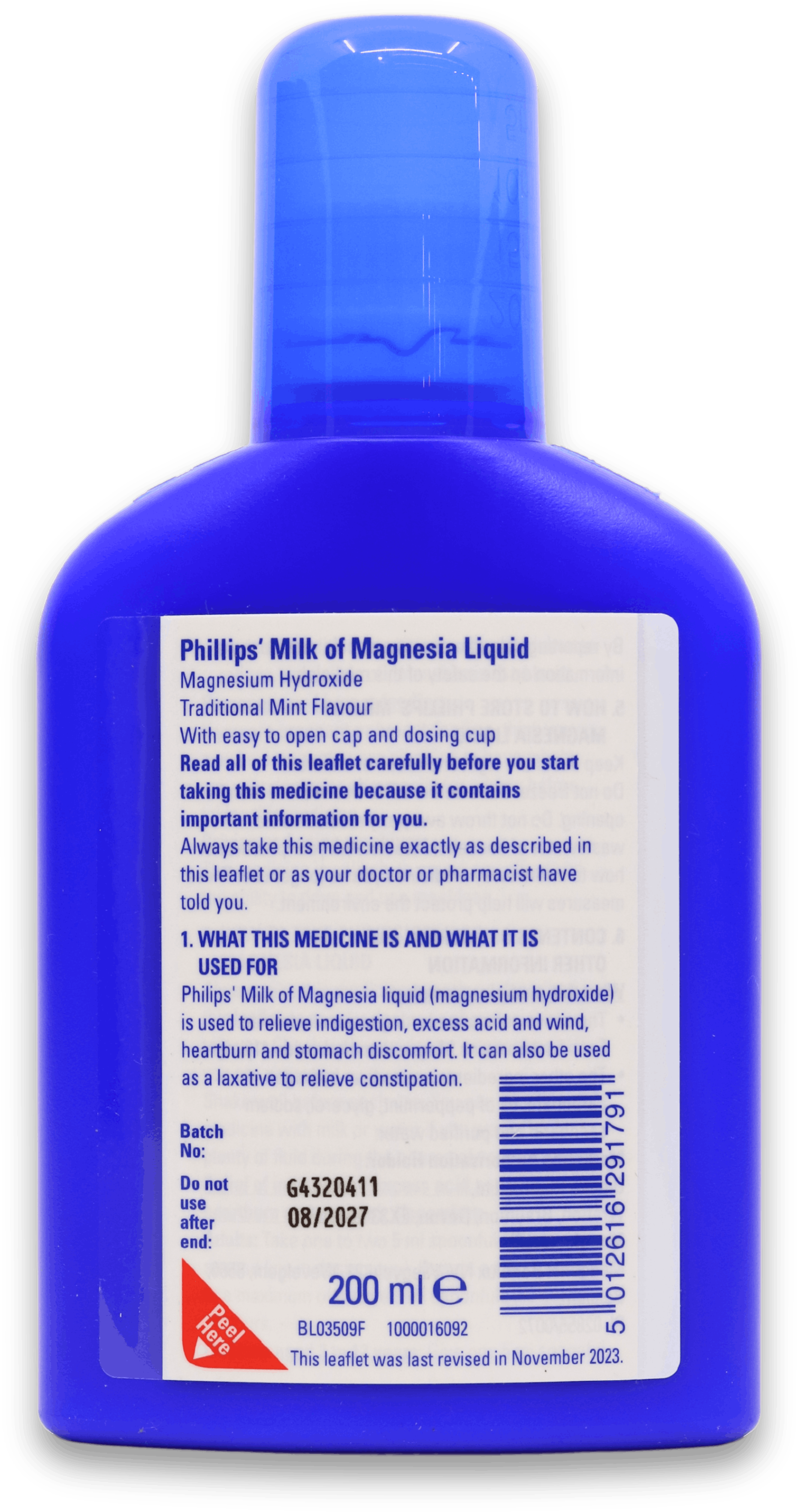 Phillips' Milk of Magnesia Liquid 200ml offers a reliable solution for individuals seeking relief from occasional constipation and digestive discomfort. This gentle, stimulant-free laxative aligns with your body's natural processes to ensure cramp-free relief. It's an ideal option for managing occasional constipation, indigestion, excess acid, wind, heartburn, or stomach discomfort, making Phillips' Milk of Magnesia a preferred choice for effective and gentle digestive support.
