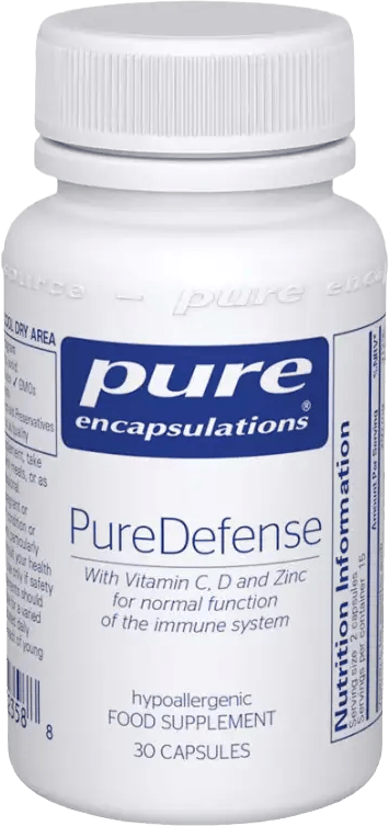 Pure Encapsulations PureDefense 30 Capsules serves as a dietary supplement designed to provide everyday support for the immune system. This blend is popular among individuals looking to enhance their first-line defence and promote upper respiratory health. Key components include vitamins C and D, zinc, NAC, EpiCor fermentate, elderberry extract, and quercetin.