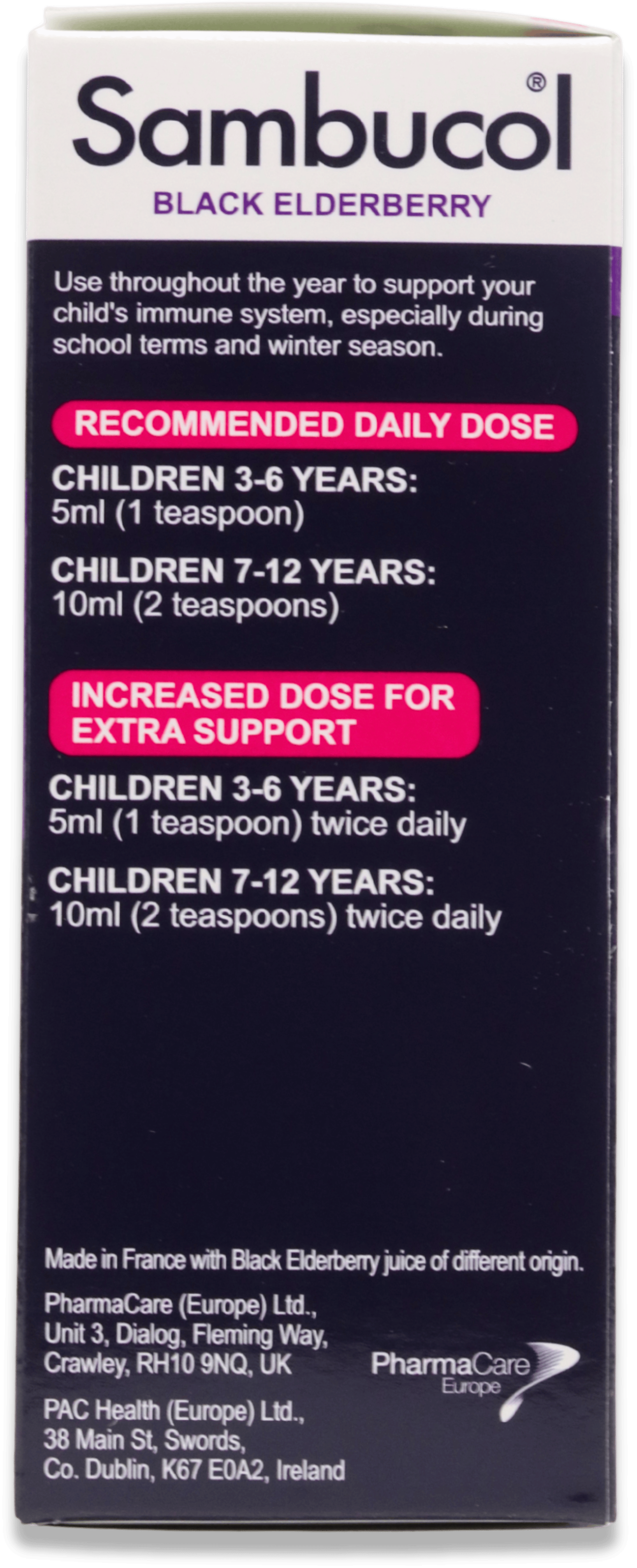 Children 1-6 years: 5ml (1 teaspoon) Children 7-12 years: 10ml daily (2 teaspoons)