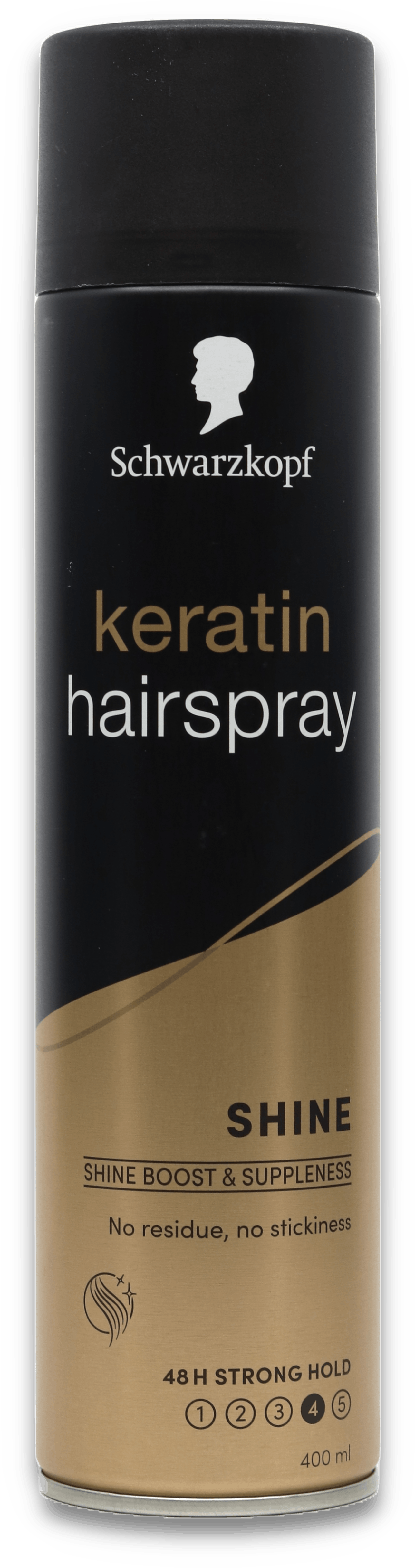 Incorporating liquid Keratin elements synonymous with those found in hair, the Schwarzkopf Keratin Hairspray establishes a fortifying barrier around each strand. The unique formula, activated by heat, results in sleek, glossy strands and defends against environmental factors such as moisture and ultraviolet rays.