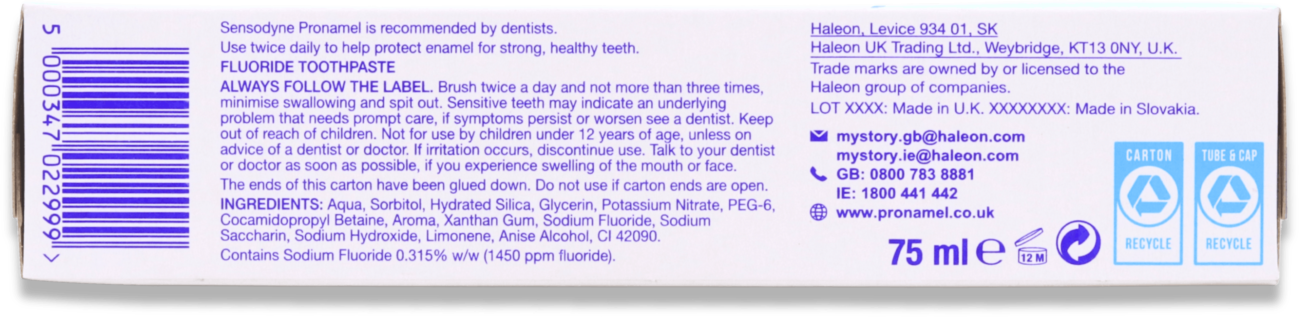 Sensodyne Pronamel Toothpaste has been crafted with care to guard against the impacts of acid erosion, actively fortifying enamel that has become compromised. It plays a crucial role in the fight against cavities, ensuring dental vitality. Ideal for individuals with sensitive dentition or anyone prioritizing oral wellness. Its mint flavour provides a refreshing sensation, leaving your breath smelling great and your mouth feeling exceptionally clean. Dentists frequently recommend it for its enamel strengthening and protective qualities.