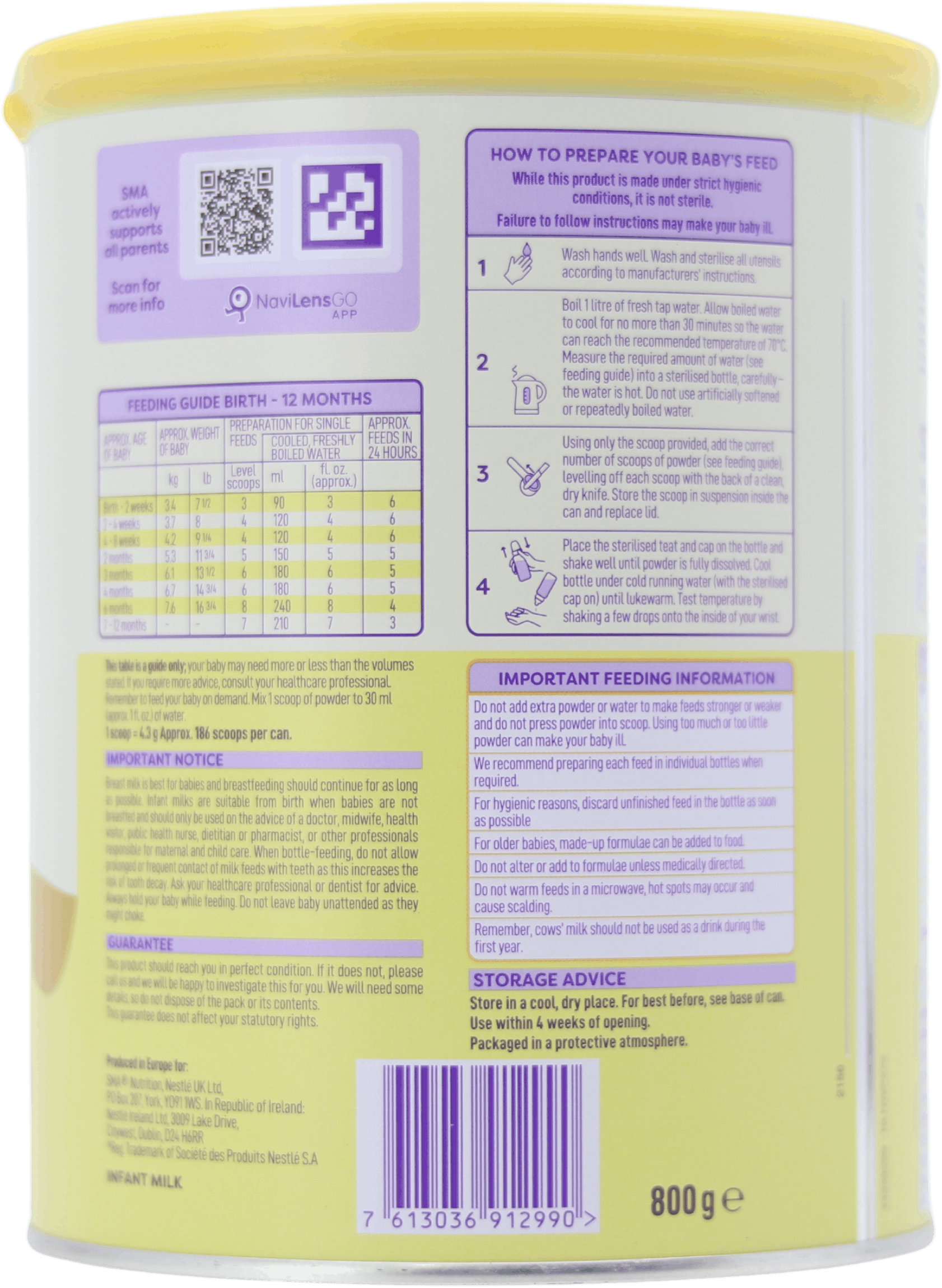 - Nutritionally complete formula suitable from birth to 12 months