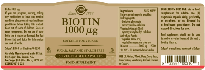 Yes, Solgar Biotin 1000µg is suitable for vegans.