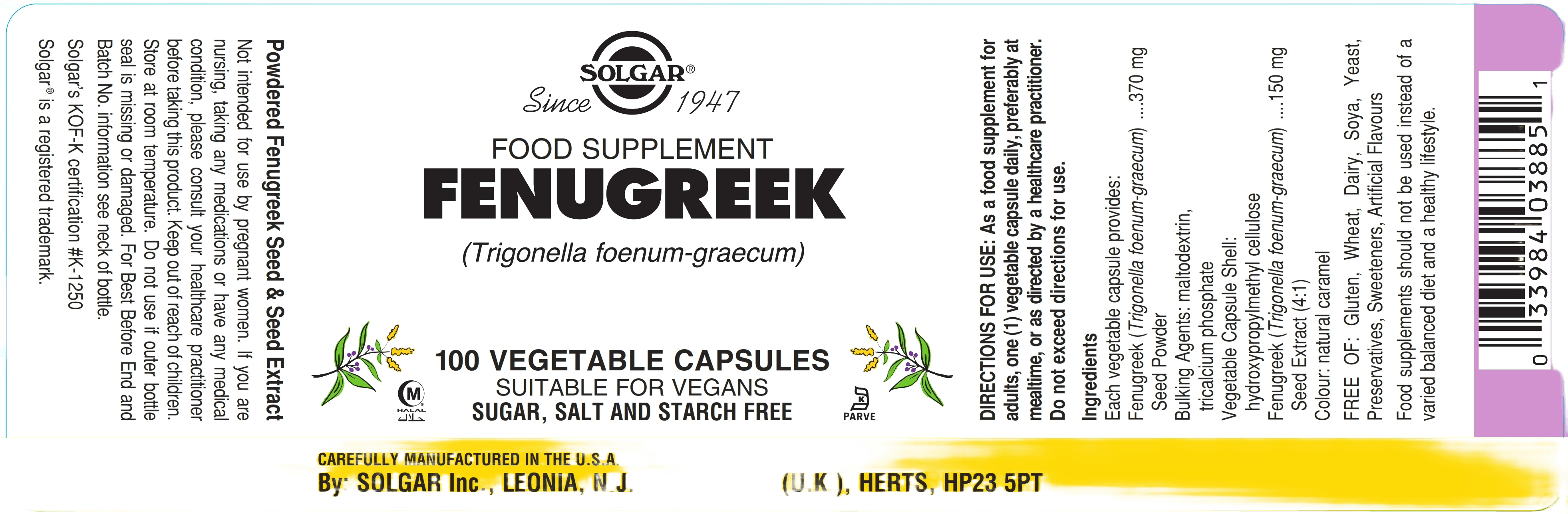 Solgar Fenugreek Vegetable Capsules, suitable for Vegans and Vegetarians, contains both extract and powder of the fenugreek seeds; 1 tablet a day provides 150mg extract and 370mg powder.