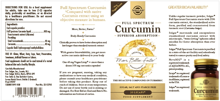 Solgar Full Spectrum Curcumin 30 Licaps have unlocked the power of curcumin with a greater bioavailability than standard curcumin: meaning better, faster absorption, helping curcumin to be more readily available for use where it's needed in the body.