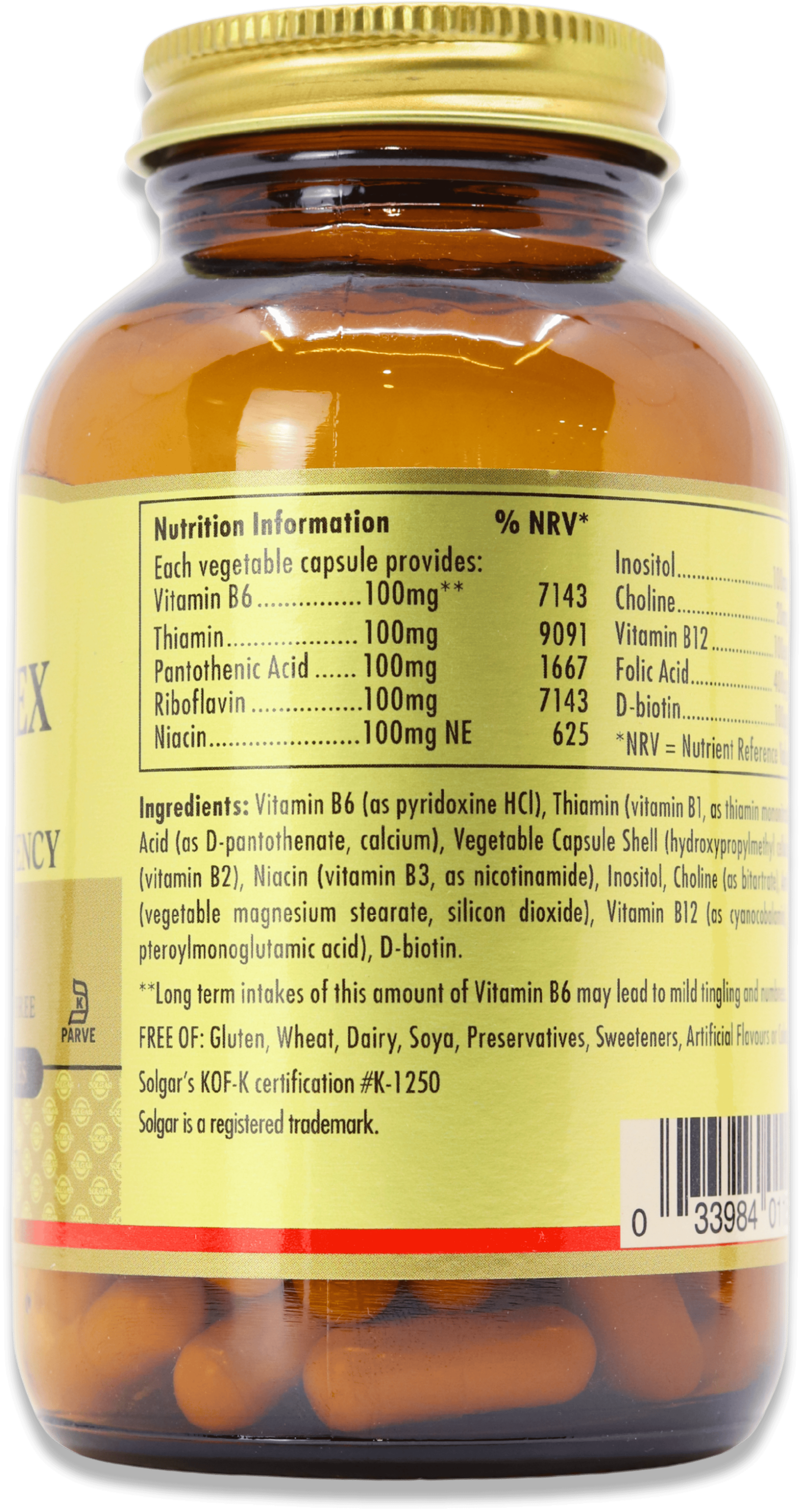 Solgar Vitamin B-Complex ''100'' is an extra high potency formulation delivering a 100mg dose of key B vitamins. Many B vitamins are interdependent, and thus it is best to take them in combination, such as through a B-complex or a multiple vitamin containing a B-complex.
