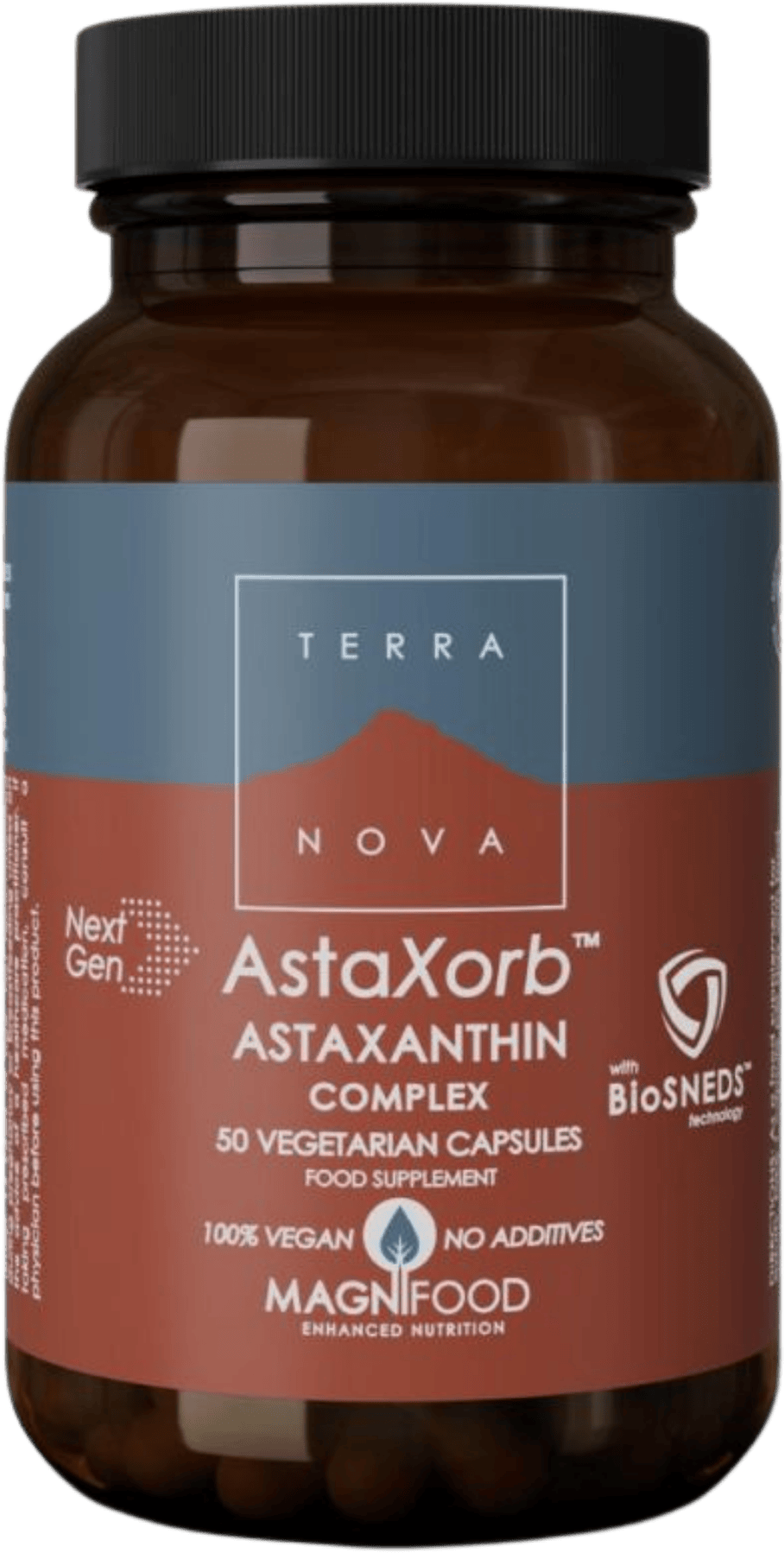 Terranova AstaXorb Astaxanthin Complex 50's is a powerful antioxidant supplement. It benefits individuals seeking to support overall health. Research shows its efficacy in promoting skin health and eye function.