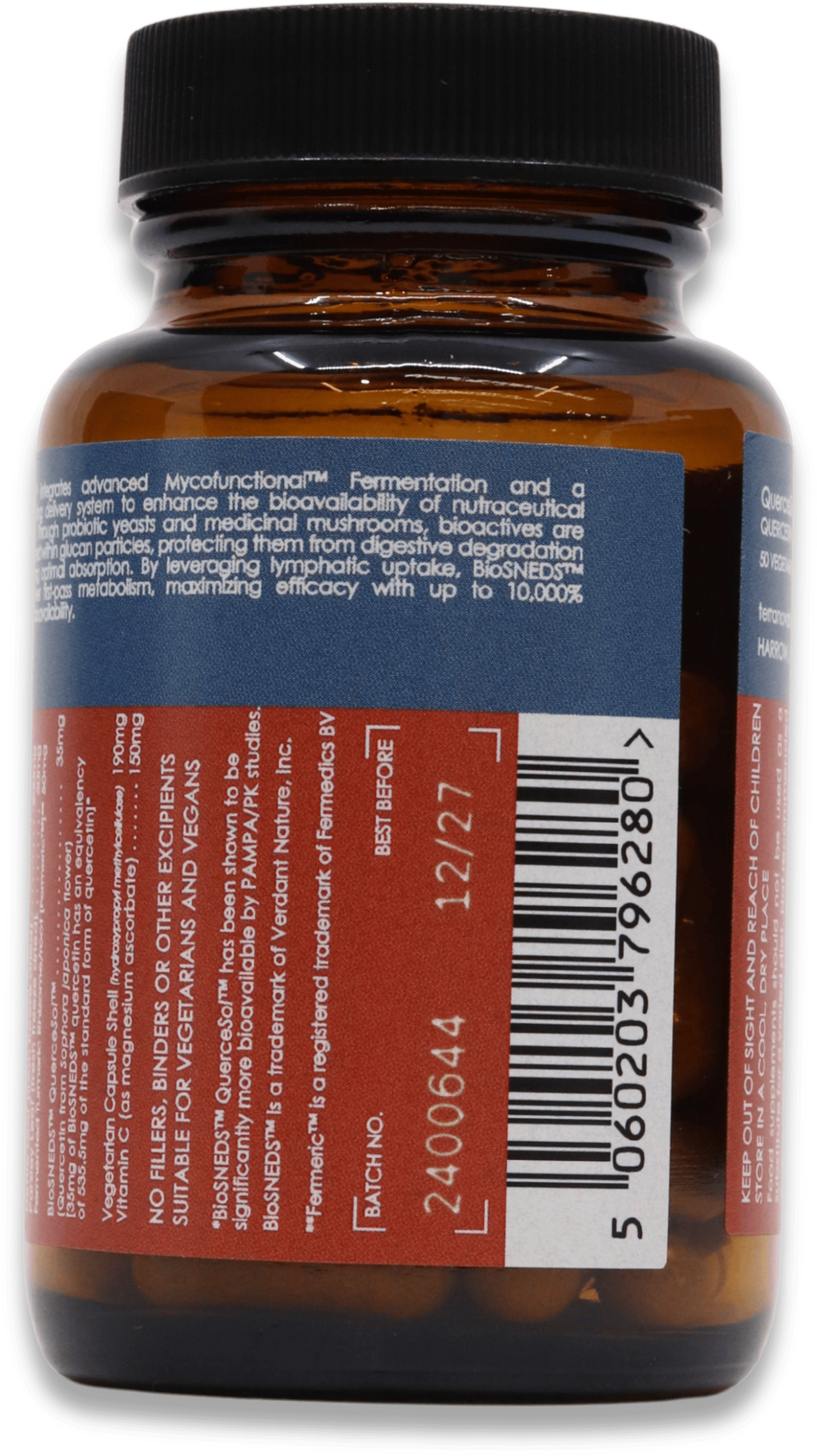 *BioSNEDS™ QuerceSol™ has been shown to be significantly more bioavailable by PAMPA/PK studies. BioSNEDS™ is a trademark of Verdant Nature, Inc. **Fermeric™ is a registered trademark of Fermedics BV