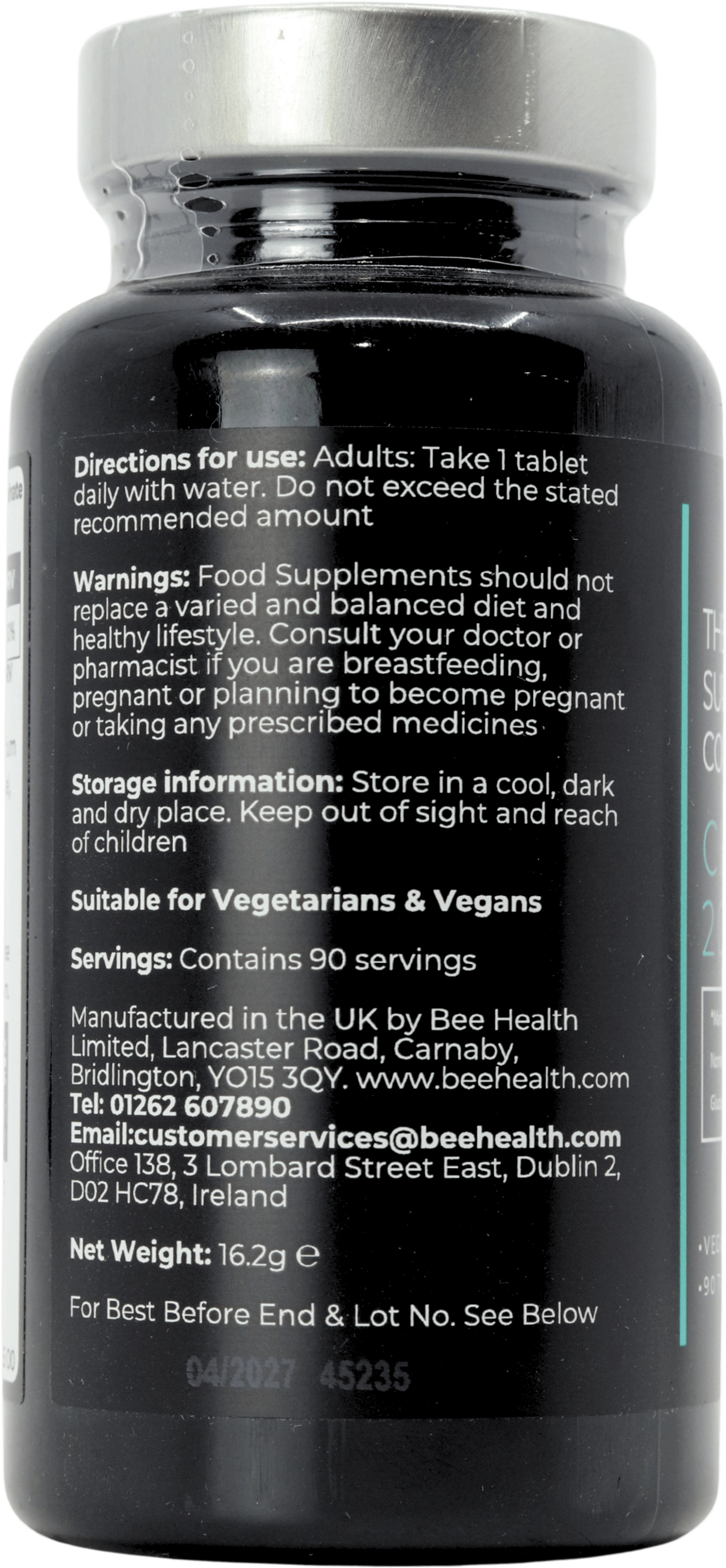 KEEP SUPPLEMENTS SAFELY OUT OF SIGHT AND REACH OF CHILDREN. FOOD SUPPLEMENTS SHOULD NOT BE USED AS A SUBSTITUTE FOR A VARIED DIET AND HEALTHY LIFESTYLE.