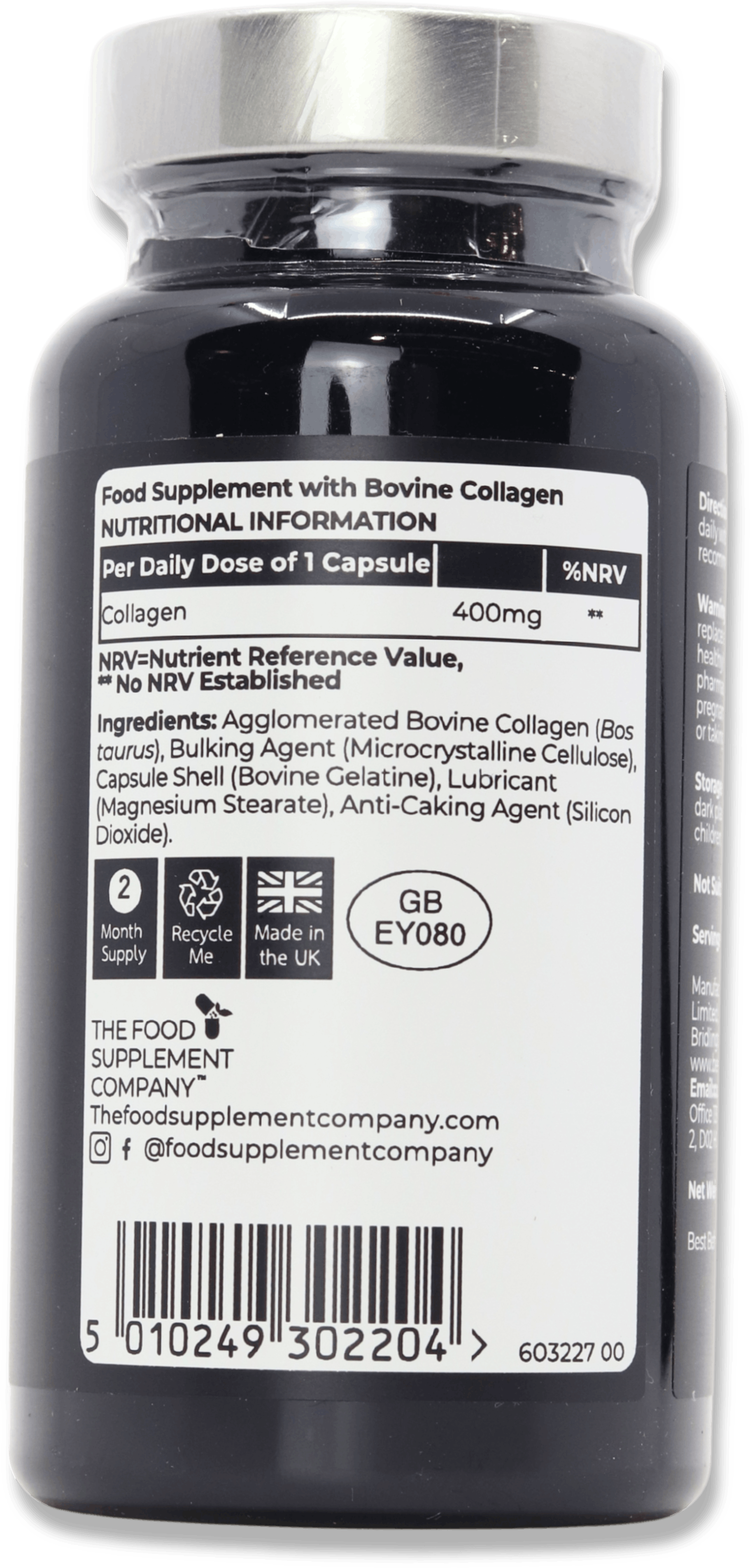 The Food Supplement Company Collagen 400mg 60 Capsules makes it simple to support daily well-being. Each capsule contains high-quality type 1 bovine collagen, vital for hair, skin, nails, and connective tissue strength. For adults leading busy lifestyles, these capsules help maintain skin elasticity while also supporting joints as the body ages. Collagen is the most abundant protein in the human body, yet levels drop with age, so many choose to supplement. Various studies suggest collagen improves skin hydration and joint health, offering science-backed reasons to include The Food Supplement Company Collagen 400mg 60 Capsules in your routine.