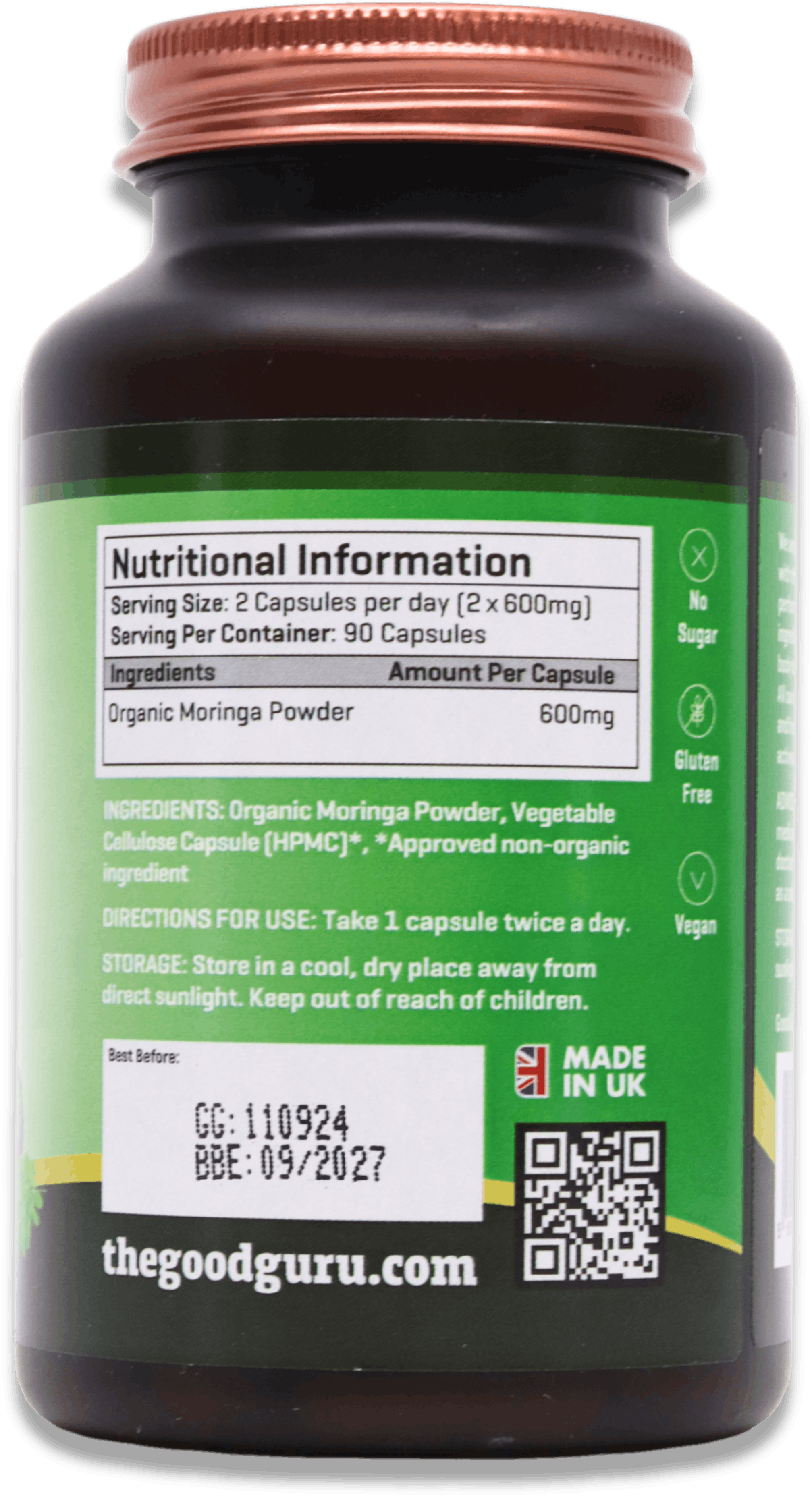 The Good Guru Organic Moringa 1200mg 90 Capsules