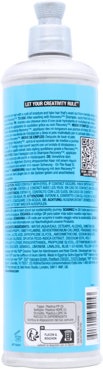 The Tigi Bed Head Conditioner Recovery 400ml aids in minimising frizz, refining hair texture, and rendering hair soft and lustrous. It also profoundly hydrates and enriches parched, moisture-deprived hair.