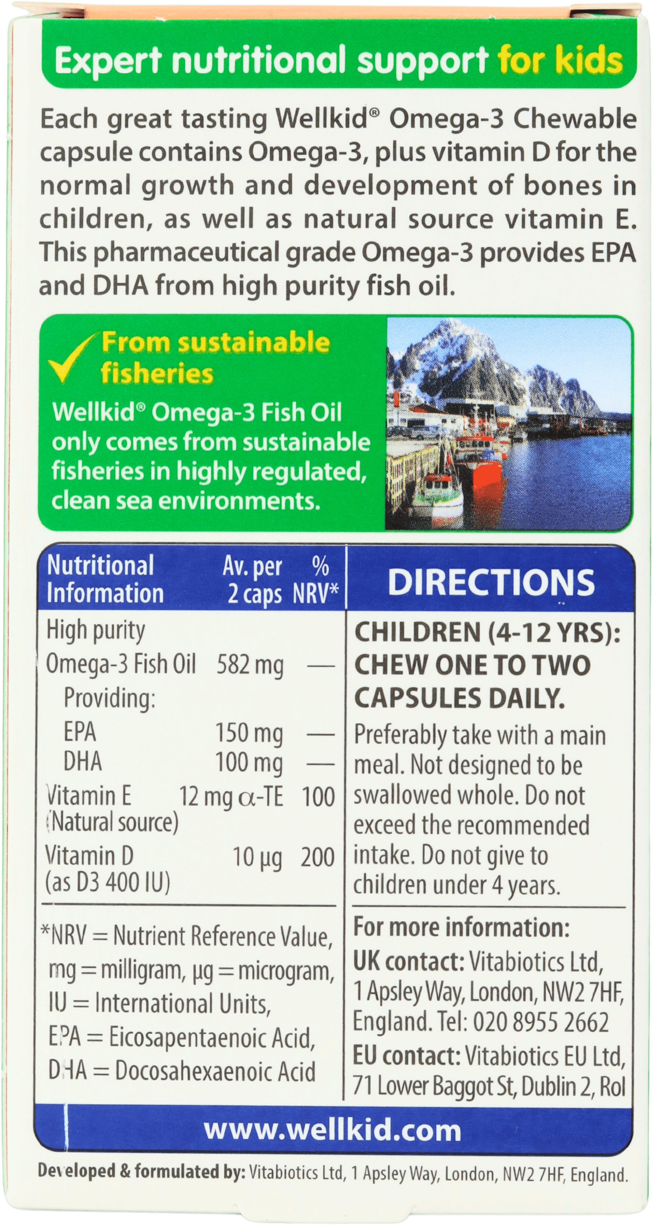 Absolutely, every two capsules contain 10µg of vitamin D, in line with UK Department of Health guidelines. Vitamin D plays a crucial role in normal bone growth and immune function in children, supporting their overall health effectively.