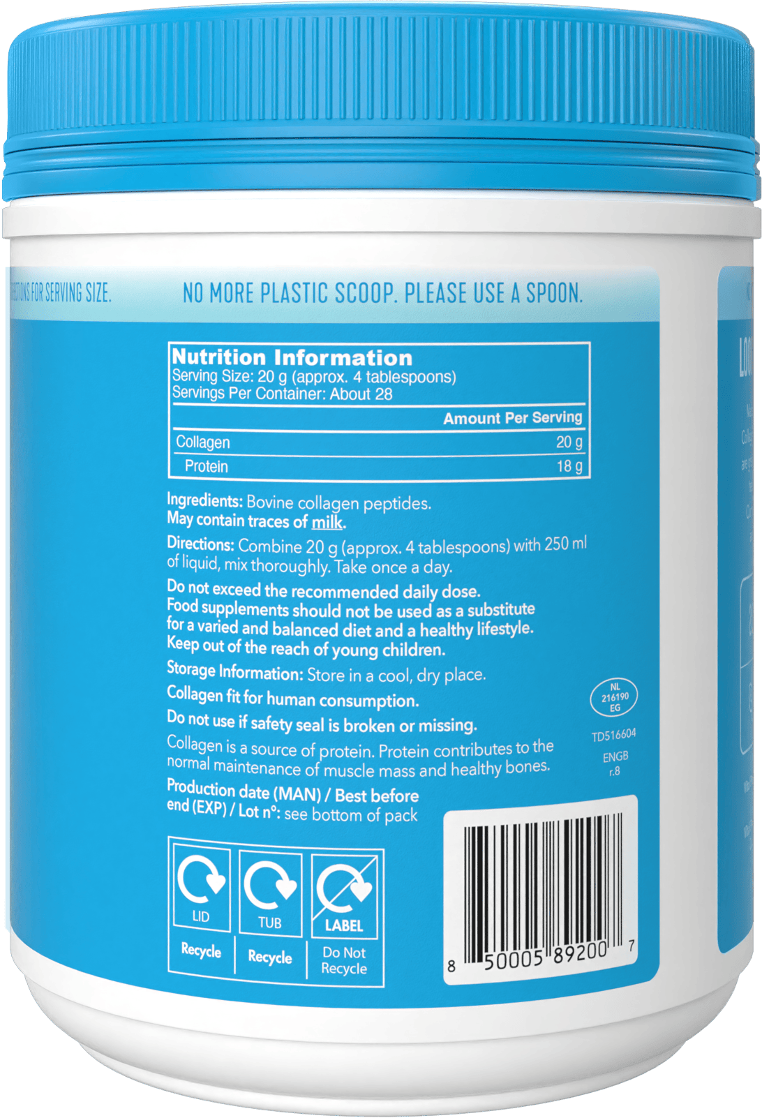 Collagen: 20g (of which protein: 18g)