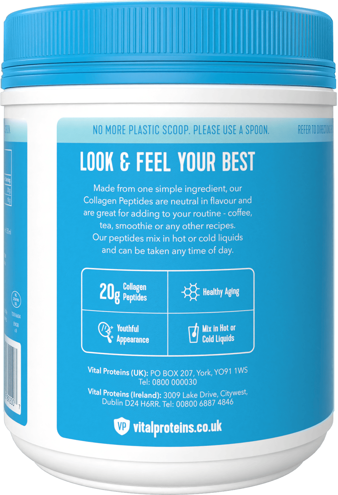 Unflavoured Vital Proteins Collagen Peptides, perfect for adding to drinks and smoothies without sweetening the taste – and in a large 567g container, there'll be enough to last for weeks.