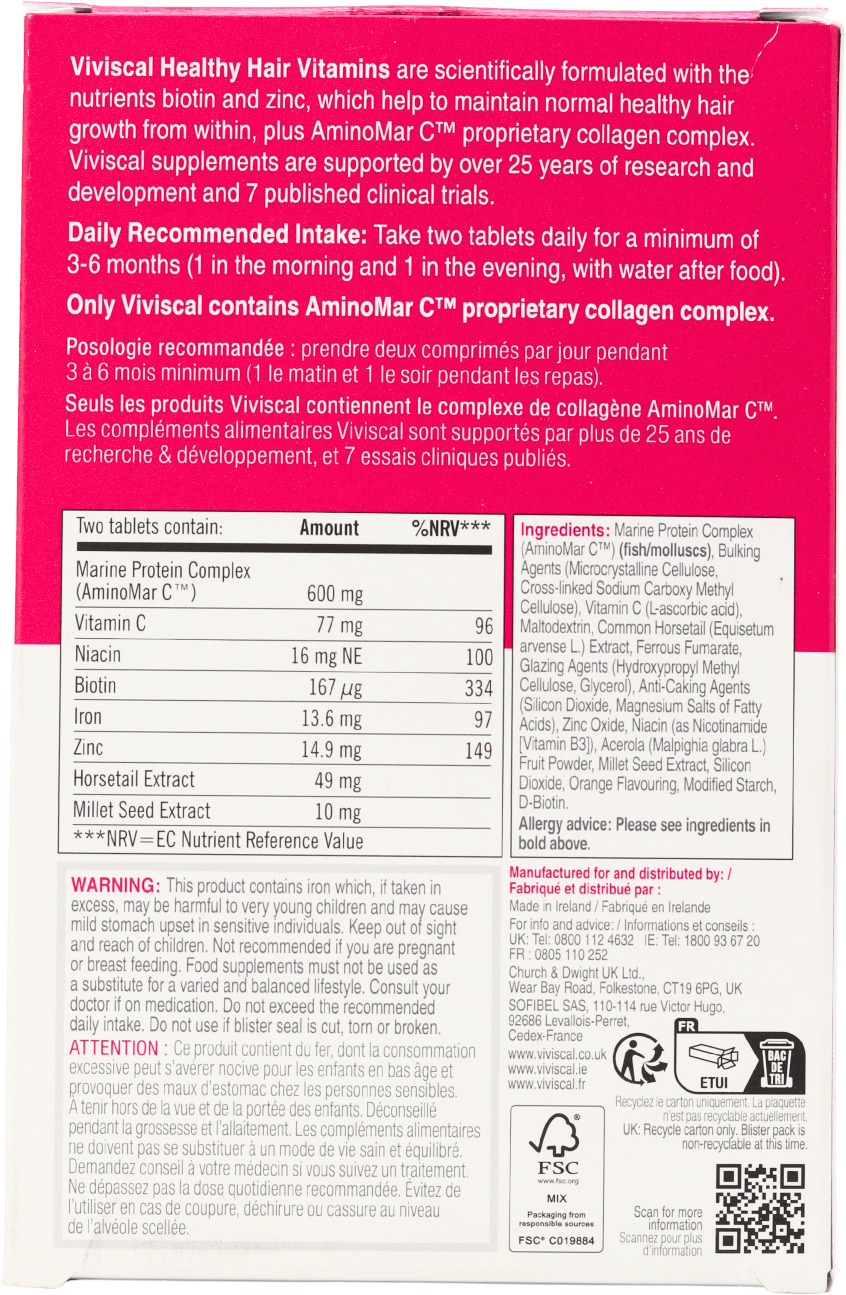 The core of the formula is the AminoMar C marine collagen complex, developed from marine extracts to nourish hair from the inside. This is combined with biotin and zinc to support normal hair, vitamin C for normal collagen formation, plus iron, niacin, horsetail extract and other supportive nutrients.