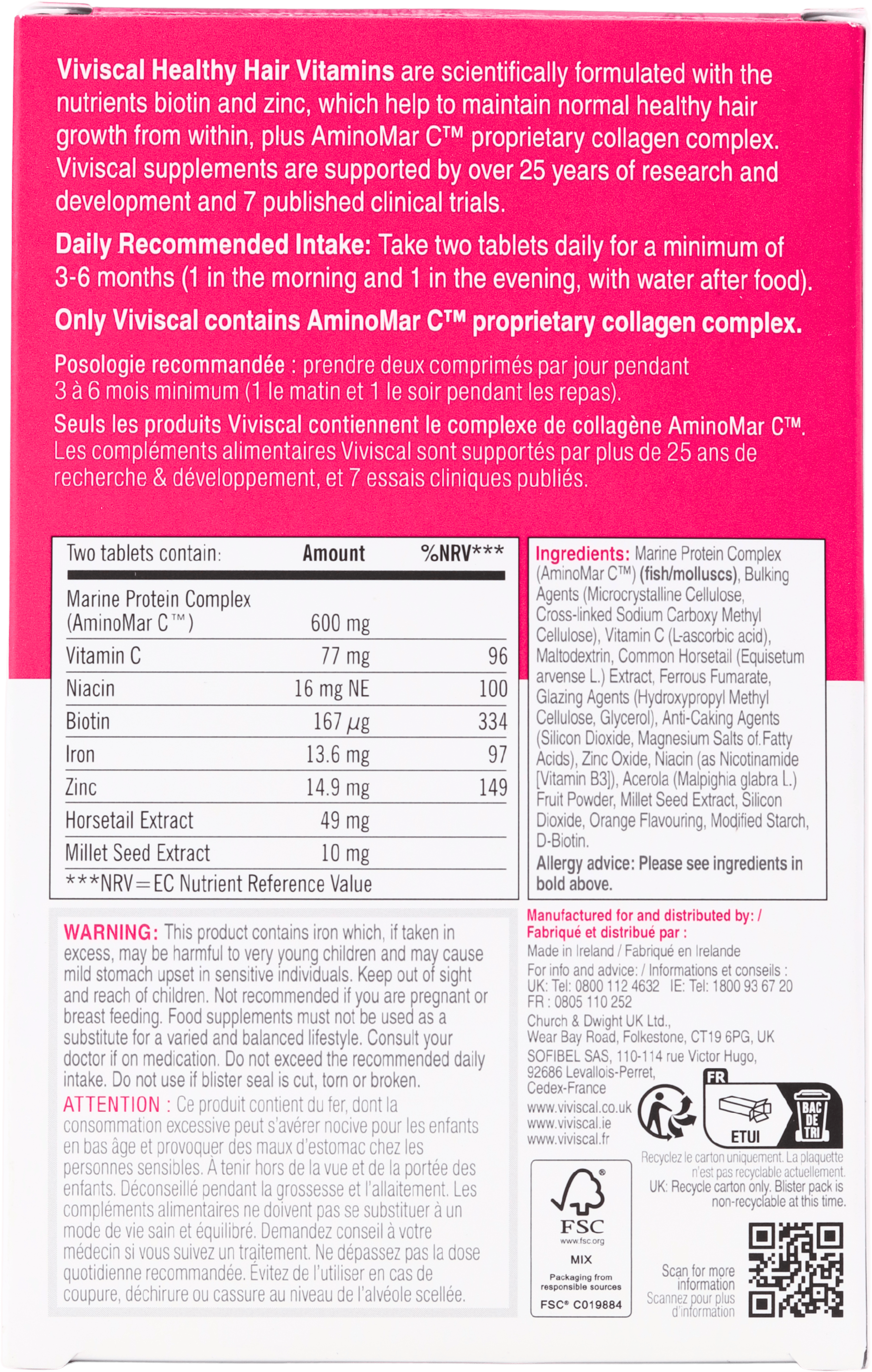 Viviscal Vitamins for Healthy Hair contain a marine-derived complex sourced from fish and molluscs, so they are not suitable for anyone with fish or shellfish allergies. People who are pregnant, breastfeeding, under medical supervision or taking regular medication should check suitability with a doctor or pharmacist before use.
