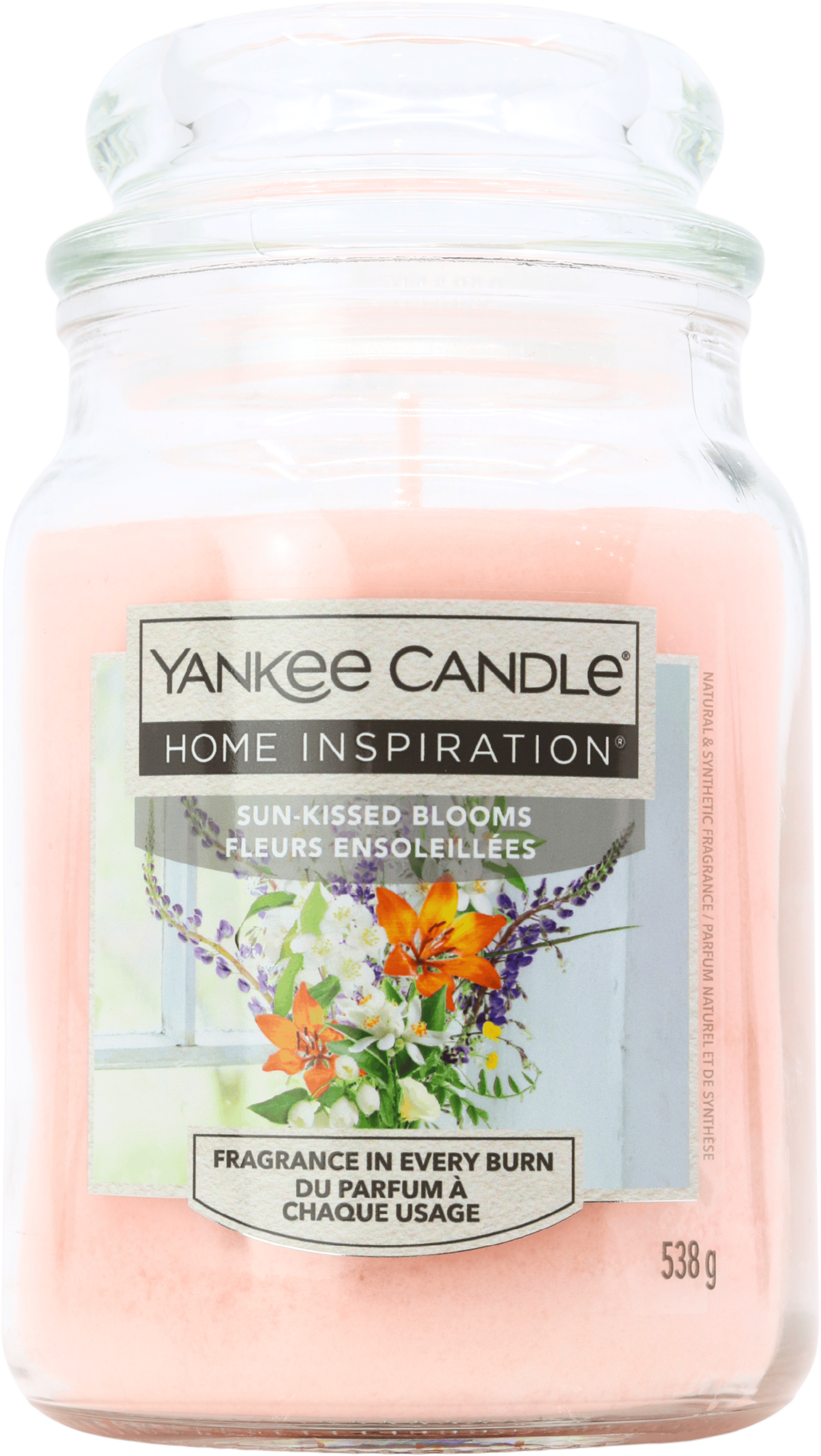 Yankee Candle Home Inspiration Sun-Kissed Blooms 538g is a large glass jar candle designed to fill your home with a bright, floral fragrance that feels like a bouquet on a sunny windowsill, blending notes of dune grass, jasmine water and amber ocean musk for a fresh yet comforting scent profile. This candle suits anyone who enjoys long-lasting home fragrance for living rooms, bedrooms or open-plan spaces, and who prefers a classic jar that complements a wide range of interiors. The generous 538 g size and carefully blended wax are crafted to deliver a consistent scent throw for many hours, while the familiar lidded jar helps preserve the fragrance between uses and keeps things looking neat on shelves or side tables.