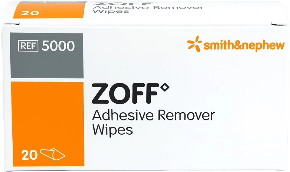 Zoff Adhesive Remover Wipes are specially formulated to gently and effectively remove medical adhesives from the skin without causing irritation. Ideal for use after dressings, plasters, tapes, ostomy appliances, ECG electrodes, and wound care products, Zoff wipes make adhesive removal quick, comfortable, and pain-free.